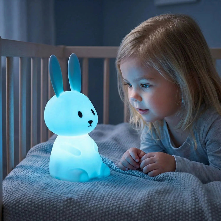 Veilleuse bébé lapin douce 7 couleurs – Apaise les peurs du noir et aide bébé à s’endormir rapidement